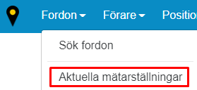 Steg 1. Logga in och navigera till Fordon → Aktuella mätarställningar. En lista på alla fordon i din organisation visas.