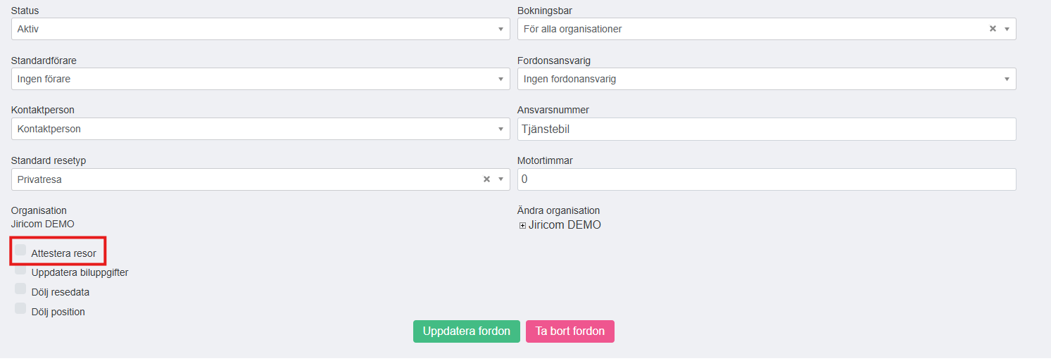 Den här guiden visar hur du aktiverar tillvalsfunktionen attestera resor för ett fordon i webbgränssnittet.